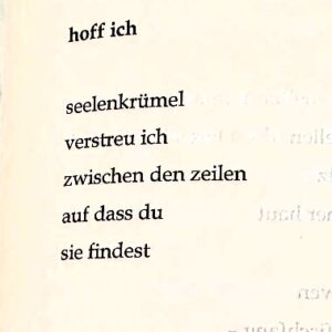Wie schön, wenn sich eine Autorin eines meiner Gedichte vorknöpft und laut darüber nachdenkt – ein herzliches Danke an Mira Rauk für das Auffinden und liebevolle Besprechen meiner „Seelenkrümel“ ************** hoff ich…