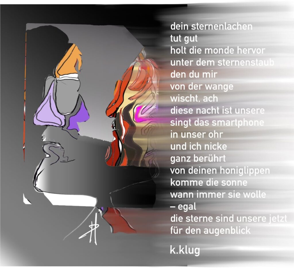 lyrik con fuse dein sternenlachen 29. September 2025 / Gedicht: Karin Klug / Zeichnung & Gestaltung: Heinz Payer
