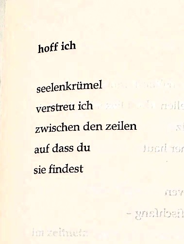 Wie schön, wenn sich eine Autorin eines meiner Gedichte vorknöpft und laut darüber nachdenkt – ein herzliches Danke an Mira Rauk für das Auffinden und liebevolle Besprechen meiner „Seelenkrümel“