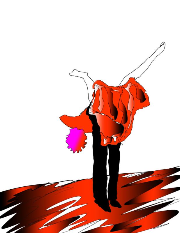 lyrik fusion du welt 19. Februar 2026 / du welt ich lasse grüßen kopfüber im takt ein tanz nur mich hält (Zeichnung: Heinz Payer)